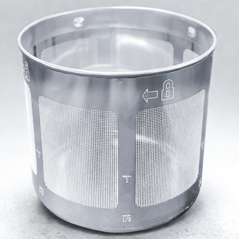 A NutMilk szűrőkosár a gép egyik legfontosabb eleme, amely biztosítja a növényi italok krémes állagát, tiszta ízét és maximális tápanyag-kinyerését. Most már külön is megvásárolható pótalkatrészként, ha szükség lenne rá. A szűrő kifejezetten strapabíró, minőségi anyagból készül, normál használat mellett hosszú élettartamú. Tapasztalataink szerint a cserére legtöbbször felhasználói hiba miatt kerül sor, amikor a szűrőt nem megfelelő irányba rögzítik a gépre. Fontos tudni, hogy a helyes rögzítés egyszerű és egyértelmű: a szűrőn található lakat jelzés mutatja, merre kell elcsavarni a biztonságos záráshoz.